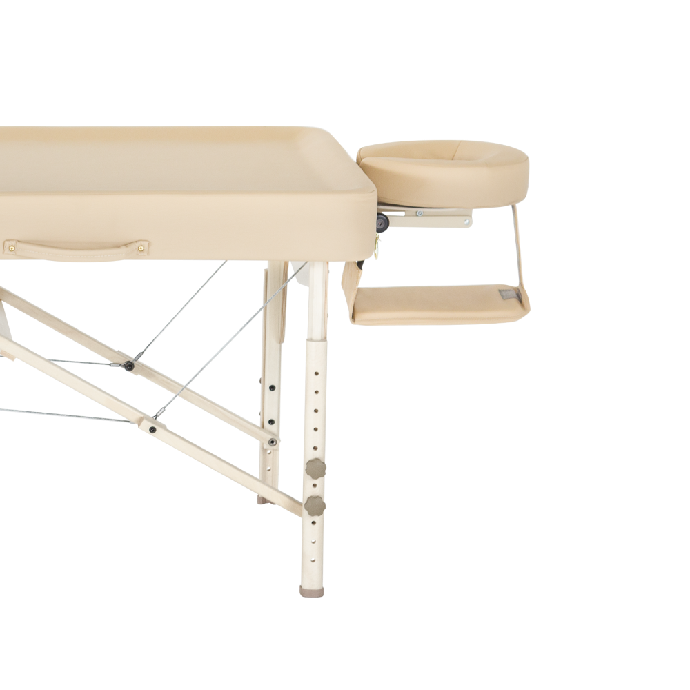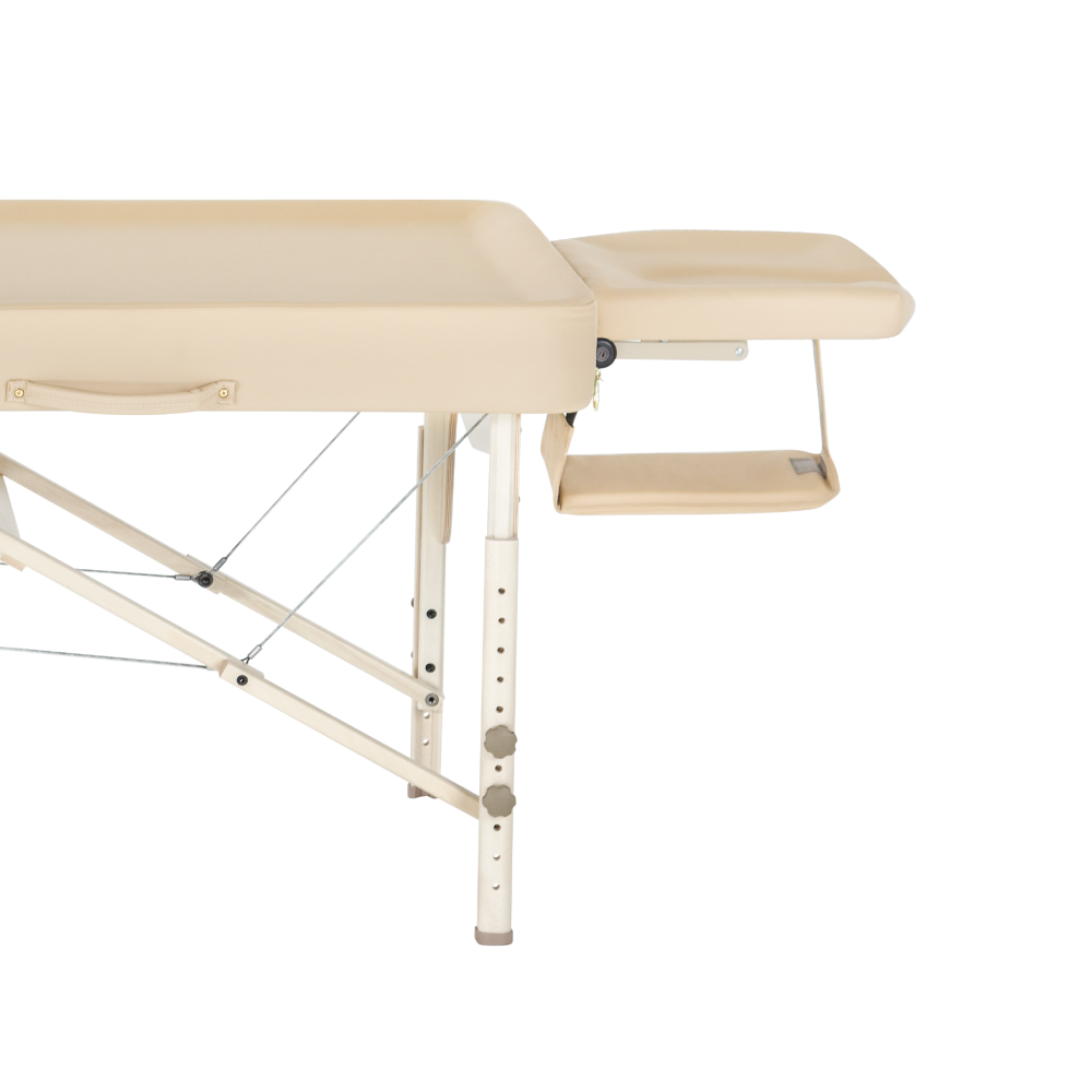 Полка для комфортного положения рук; максимальная ширина массажного стола делает его более устойчивым и удобным;