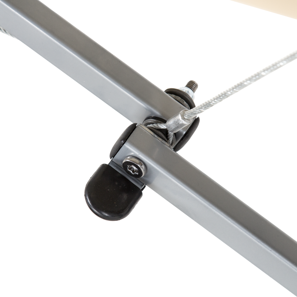 Дополнительные усилители в раме каркаса; эластичный шнур предохраняет натяжной трос от попадания между секциями во время складывания.